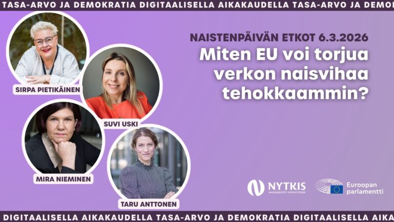 Puolustamme sukupuolten välistä tasa-arvoa sekä naisten ja tyttöjen ihmisoikeuksia. Seuraamme aktiivisesti poliittista päätöksentekoa, lainsäädäntöä ja tutkimusta naisten oikeuksien näkökulmasta
