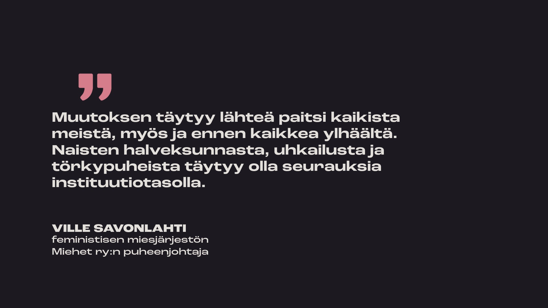 Kirjoittajana Ville Savonlahti, feministisen miesjärjestön Miehet ry:n puheenjohtaja.