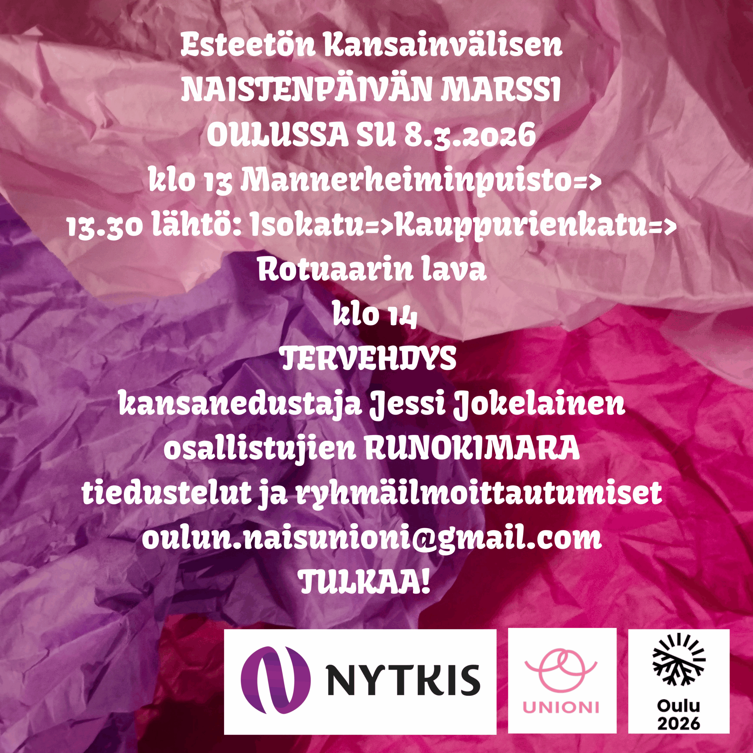 Naistenpäivän marssi Oulussa. Tule mukaan!